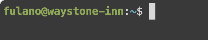 @(que en inglés significia "at", es decir, "en"), tenemos el nombre de la computadora a la que estamos conectadxs, en este casowaystone-inn. Si leemos ambas secciones juntas, se podrían traducir a "fulanoen la computadorawaystone-inn". - Después de los dos puntos, tenemos la dirección en la que estamos trabajando. El símbolo